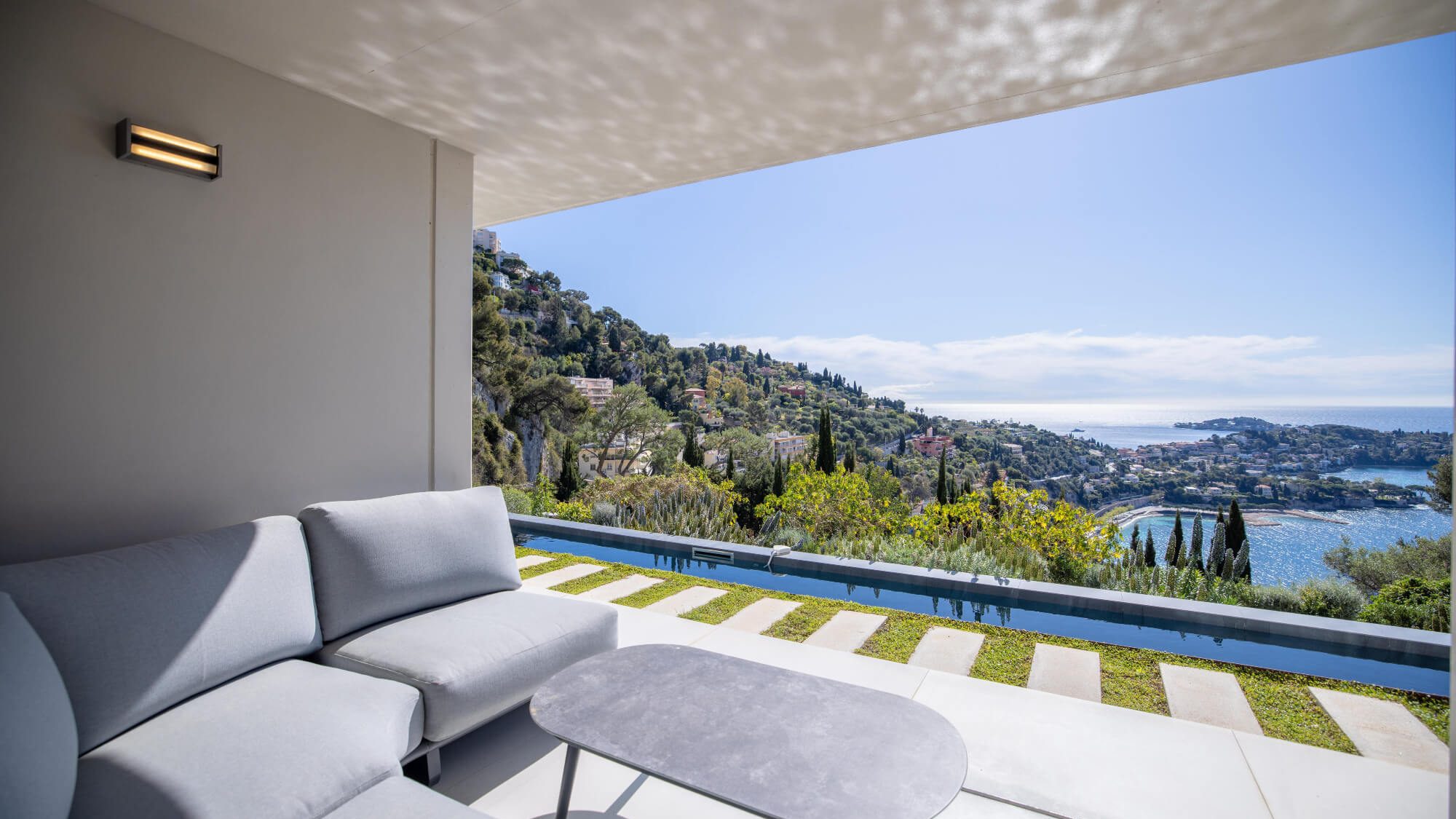 La villa Vista Magnifika 01 surplombe la baie de Villefranche-sur-Mer et la presqu’île de Saint-Jean-Cap-Ferrat. Elle dispose de 12 pièces réparties sur 3 niveaux, ascenseur, terrasses panoramiques, piscine sur le toit et équipements domotiques. Son salon au rez-de-chaussée, bordé de baies vitrées, offre une scène naturelle face à la mer. Avec cuisine équipée et espace traiteur prévu, elle permet d’accueillir techniciens, mannequins et invités dans un confort absolu.